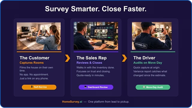 Available as part of every Movegistics plan, or standalone through HomeSurvey.ai for companies using other CRMs.